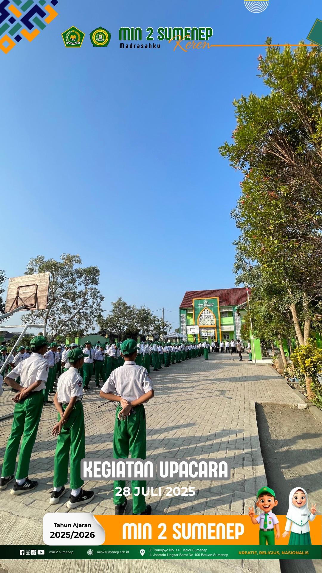 Sumenep – Madrasah Ibtidaiyah Negeri (MIN) 2 Sumenep melaksanakan upacara bendera rutin hari Senin, 17 November 2025, dengan agenda ganda: penyampaian arahan penting dari Pembina