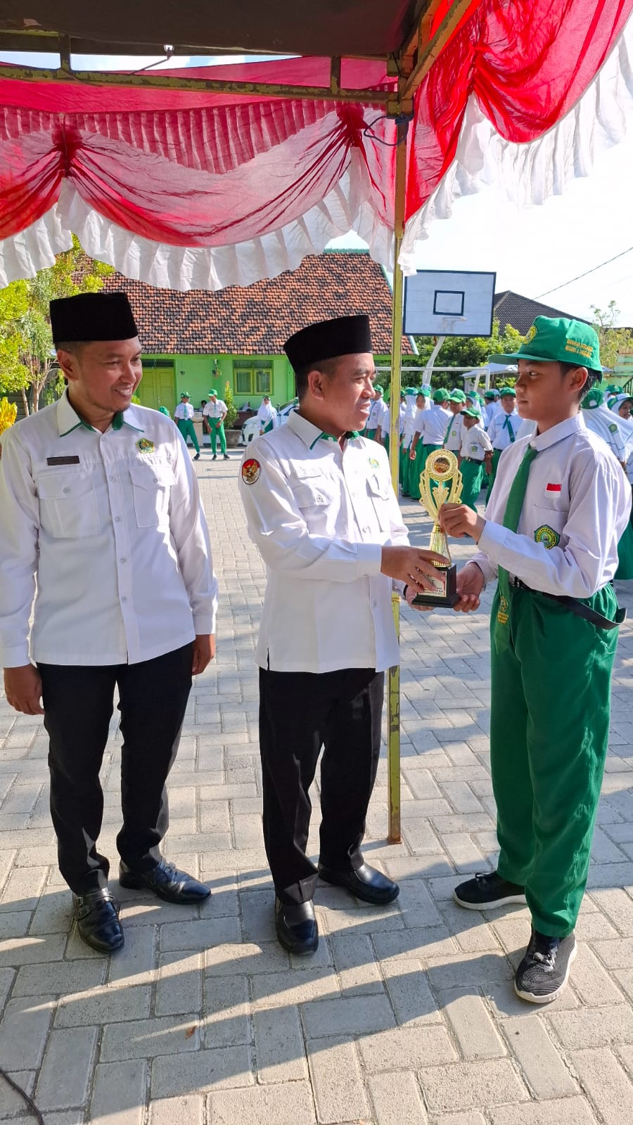 Setelah menyampaikan amanat, Kepala Kemenag Sumenep melanjutkan dengan memberikan penghargaan secara langsung kepada peserta Gerakan Pramuka Gugus Depan (Gudep) MIN 2 Sumenep. Penghargaan ini diberikan atas prestasi gemilang yang telah diraih oleh mereka.
