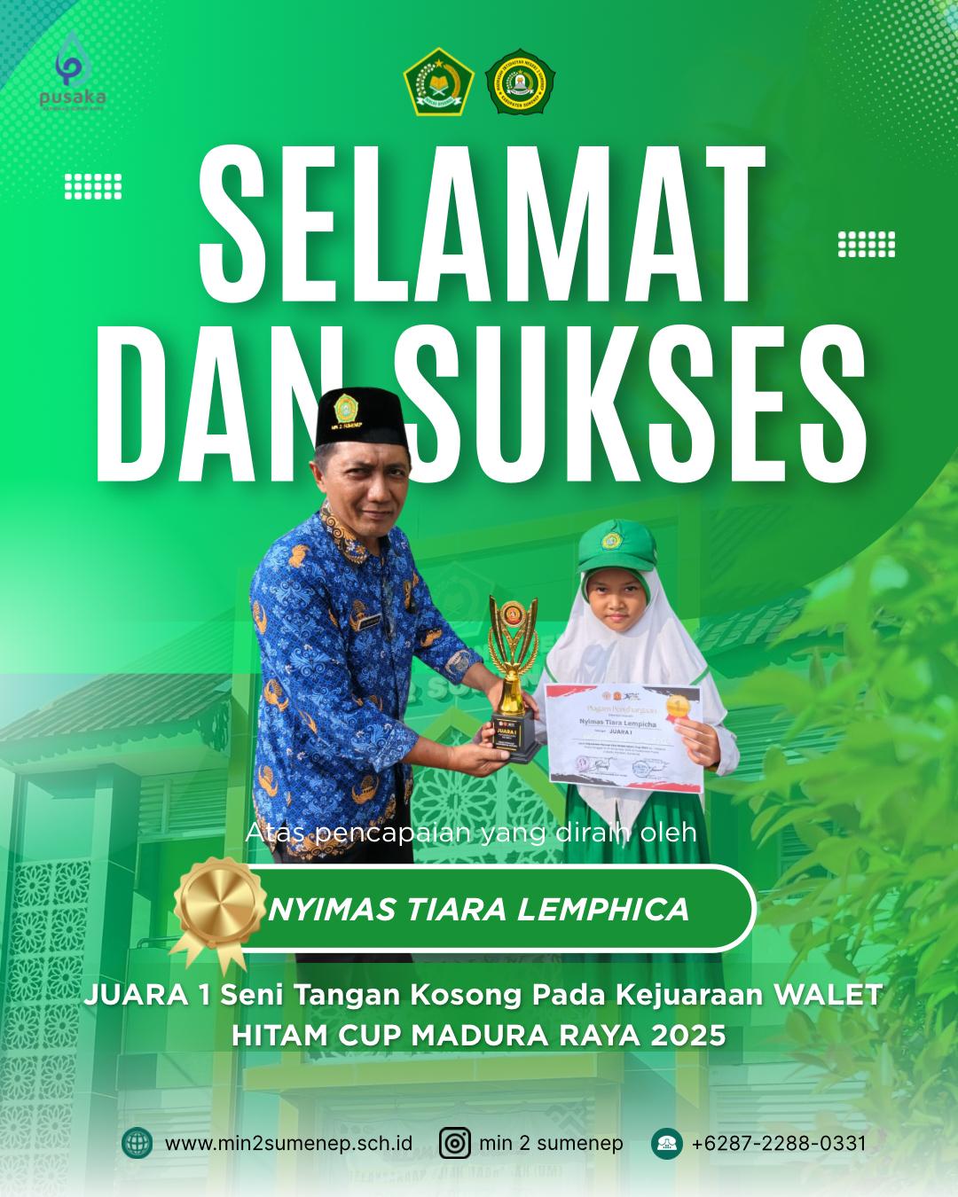 - Nyimas Tiara Lemphica sebagai Juara 1 Seni Tangan Kosong pada ajang Walet Hitam Cup Madura Raya 2025