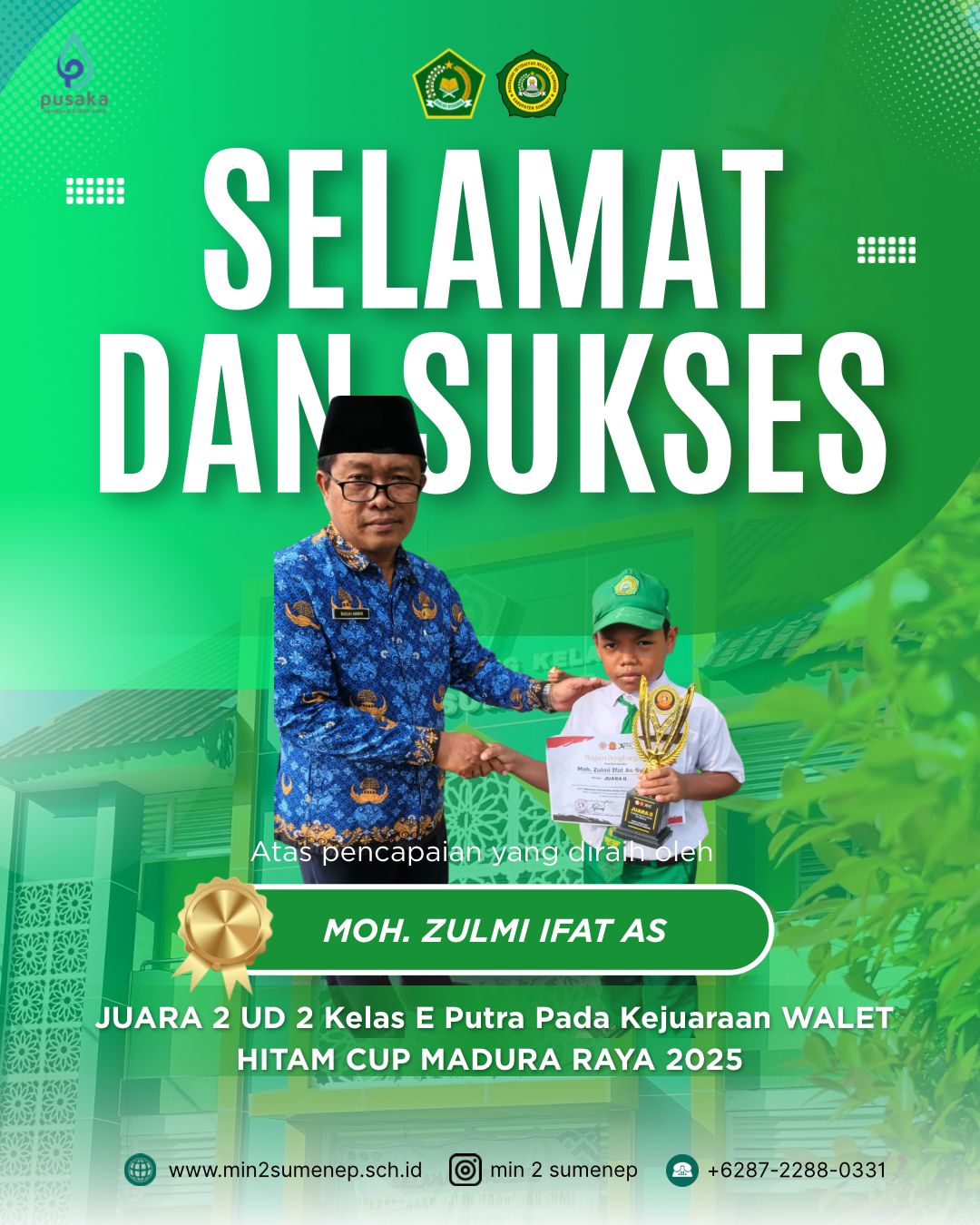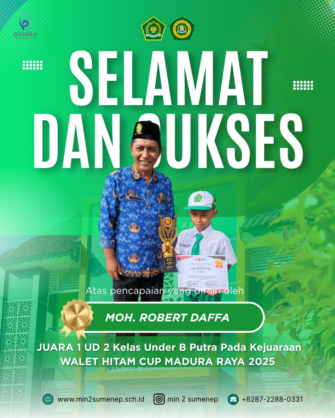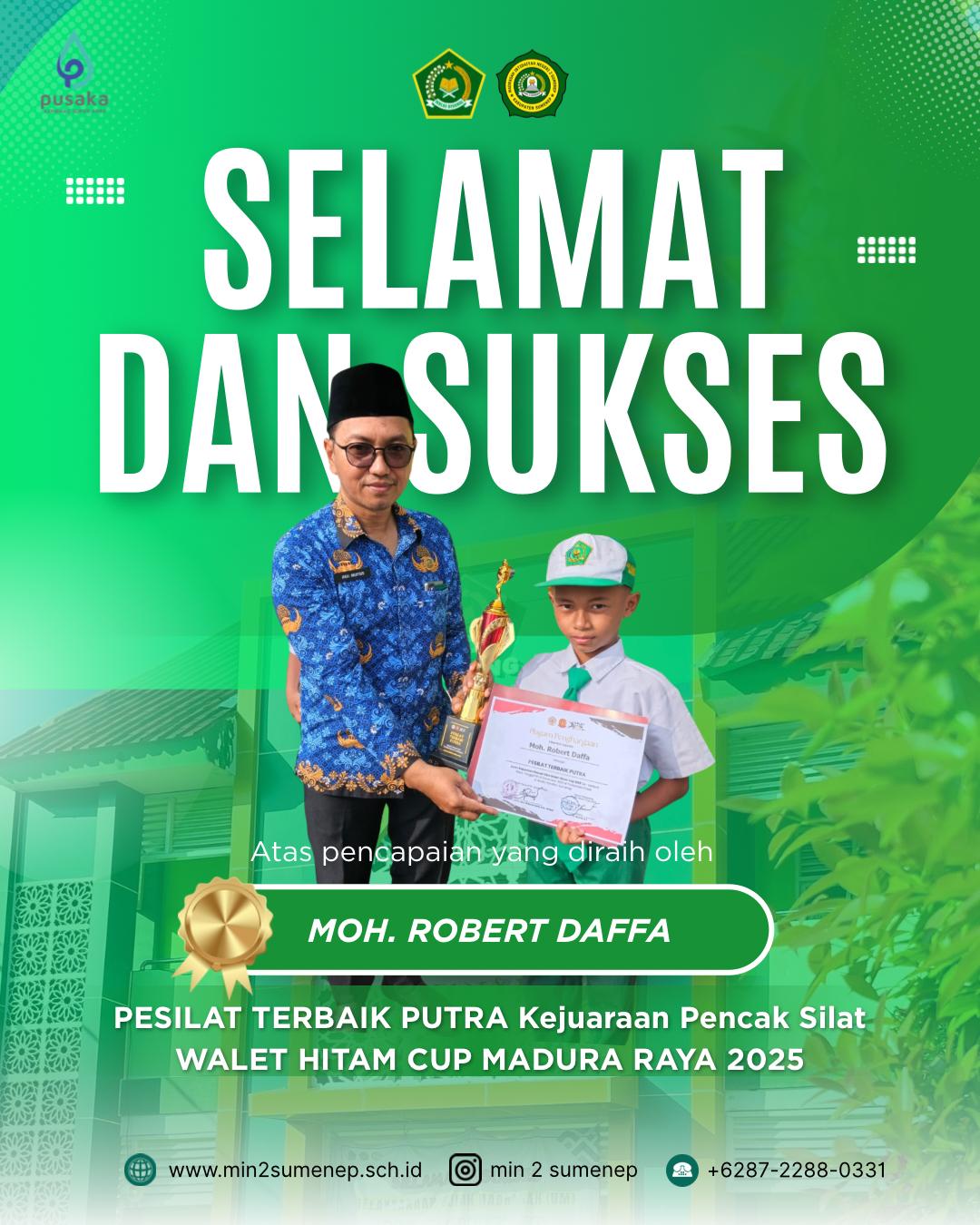 Keberhasilan dalam Kejuaraan Walet Hitam Cup Madura Raya, khususnya pengakuan Moh. Robert Daffa sebagai Pesilat Terbaik Putra, dan perolehan Gold Award di Olimpiade Matematika oleh Ninda Sherli Tadania, menjadi bukti nyata bahwa siswa MIN 2 Sumenep mampu berprestasi baik di bidang akademik maupun non-akademik (olahraga).