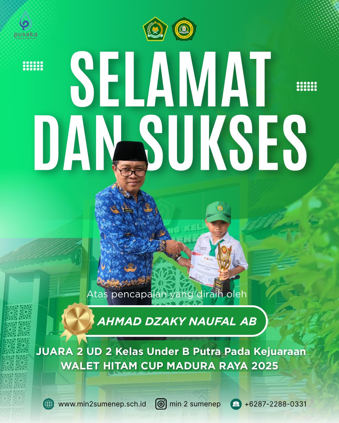 - Ahmad Dzaky Naufal sebagai Juara 2 UD 2 Kelas Under B Putra pada ajang Walet Hitam Cup Madura Raya 2025