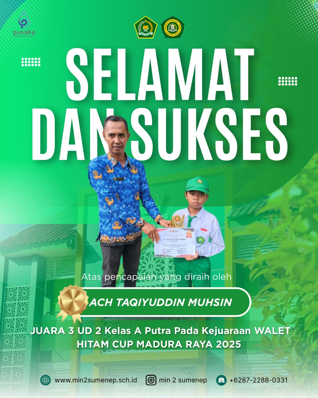 - Ach. Taqiyuddin Muhsin sebagai Juara 3 UD 2 Kelas A Putra pada ajang Walet Hitam Cup Madura Raya 2025