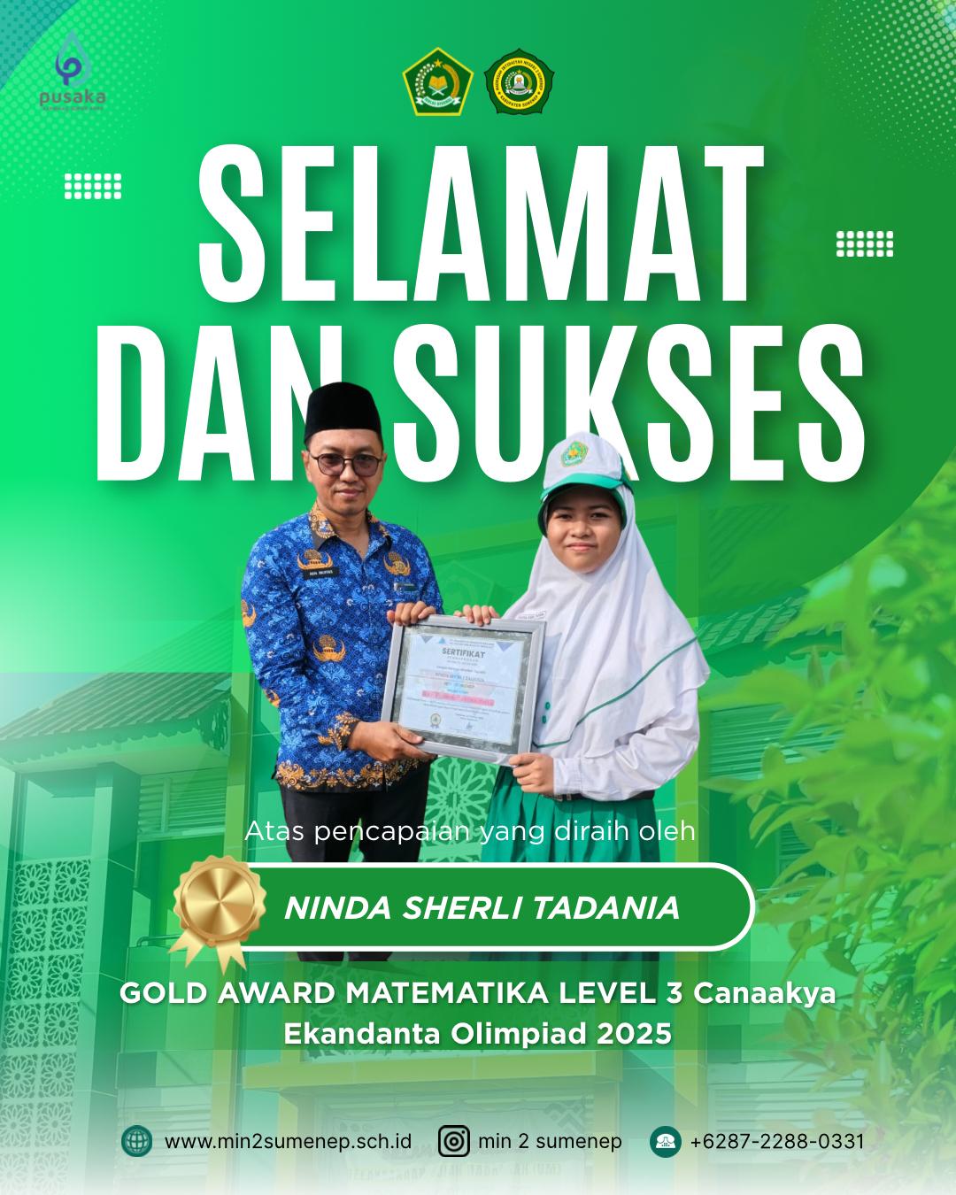 - Ninda Sherli Tadania sebagai Gold Award (Juara 1) Matematika Level 3 pada ajang Chaanakya Ekadanta Olympiad 2025 (Tingkat Kab. Sumenep.